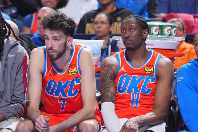 雷霆:亚历山大39分5板6助2断、霍姆格伦24分9板2助3帽、杰伦20分9板7助、华莱士17分7板3助2断、卡鲁索16分9板2助2断、米切尔10分。